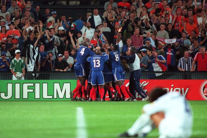 Al minuto 103, con l'Italia ferita, giù dal collo la medaglia d'oro che già sentiva sua, il giovane David Trézéguet, che due settimane prima aveva salutato il Monaco per la Juve, segna il gol d'oro che decide la finale (2-1). Pires, agendo praticamente da terzino sinistro, superato Cannavaro, scappa sull'out mancino e mette il cross definitivo. Trézéguet lo aggancia al volo e lo infila in porta. Due anni dopo aver sollevato la Coppa del Mondo, quella rete significava la conferma della Francia come dominatrice del calcio.
